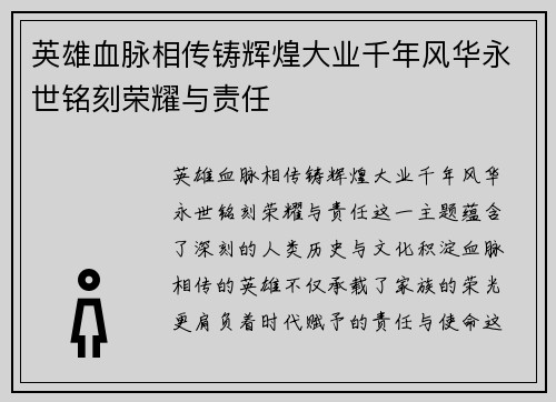 英雄血脉相传铸辉煌大业千年风华永世铭刻荣耀与责任