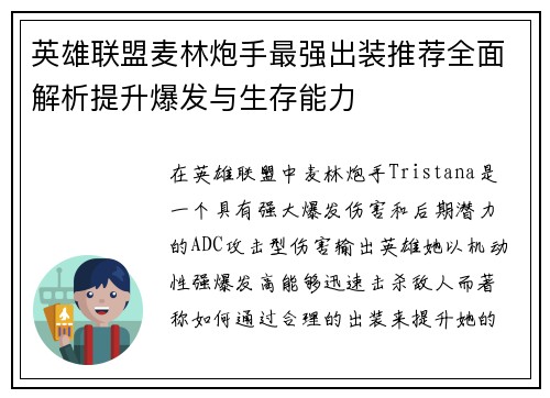 英雄联盟麦林炮手最强出装推荐全面解析提升爆发与生存能力